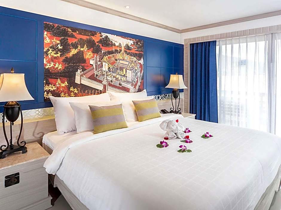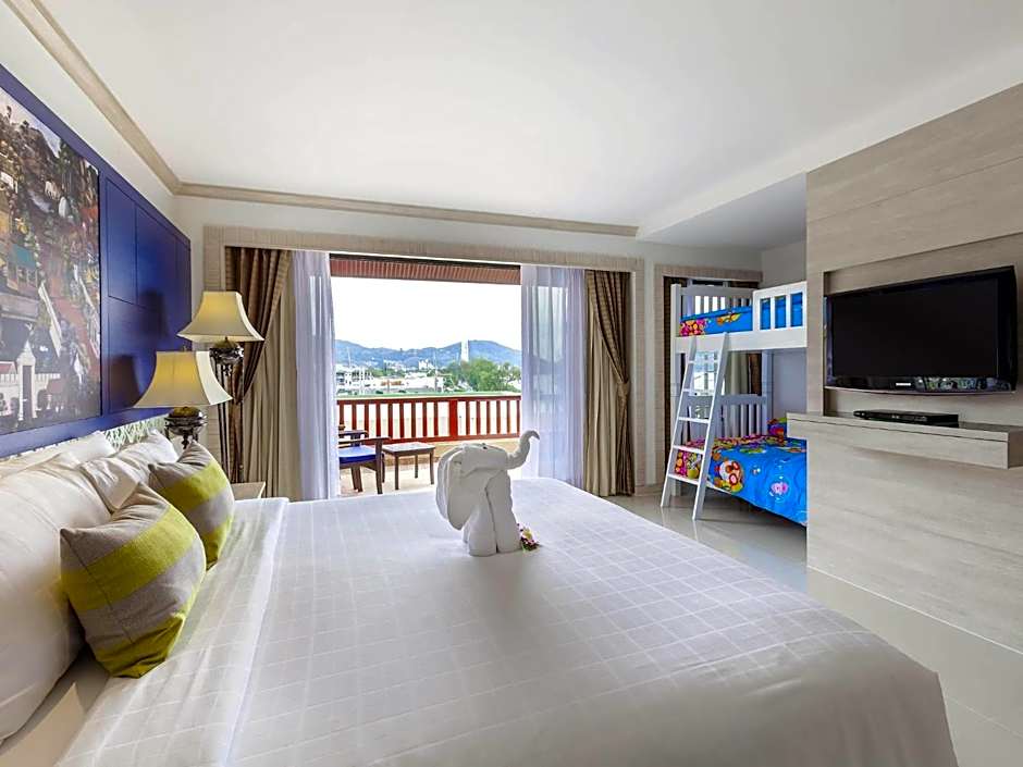 This room comes with Thai décor and sunset view. It provides 1 double bed, ergonomic work area, free WiFi Internet, satellite TV, DVD player, sofa bed and private balcony with view of Patong bay. Up to 2 adults and 1 child.